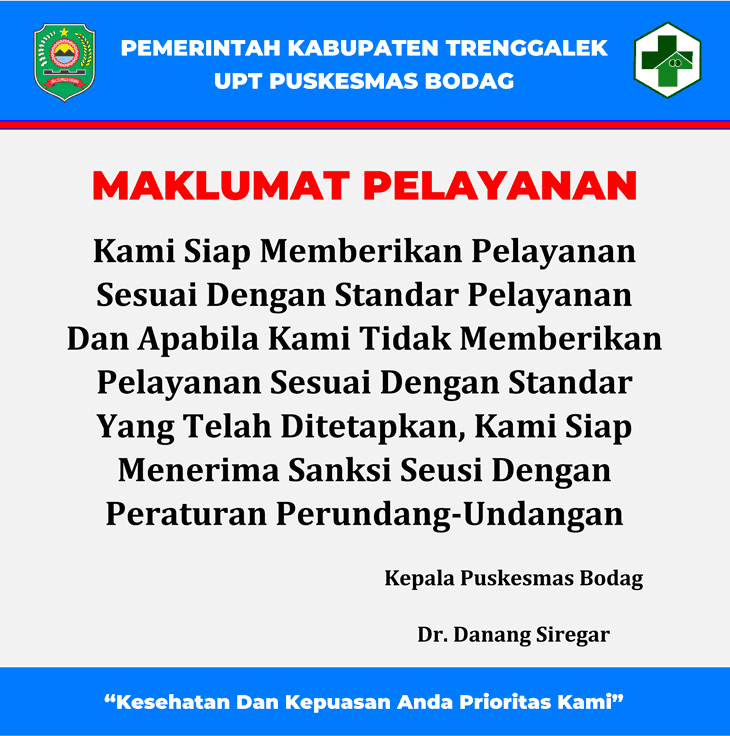 Puskesmas Bodag sebagai salah satu dari 22 Puskesmas yang berada di Kabupaten Trenggalek dengan pelayanan rawat inap. Luas wilayah kerja Puskesmas Bodag 79,67 Km2. Dalam hal perluasan cakupan pelayanan, pada tahun 2012 menambah bangunan untuk perawatan 24 jam.